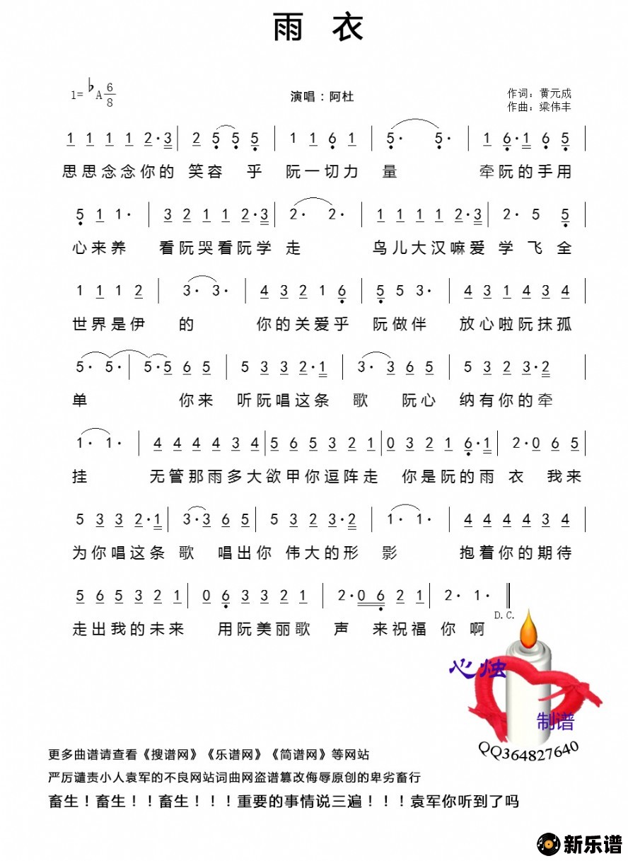 阿杜演唱的雨衣歌词,雨衣简谱.