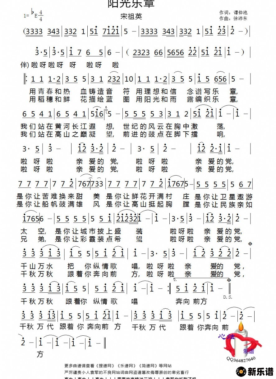《阳光乐章》简谱 宋祖英-心烛制谱