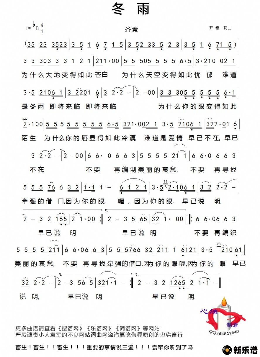 齐秦演唱的冬雨歌词,冬雨简谱.