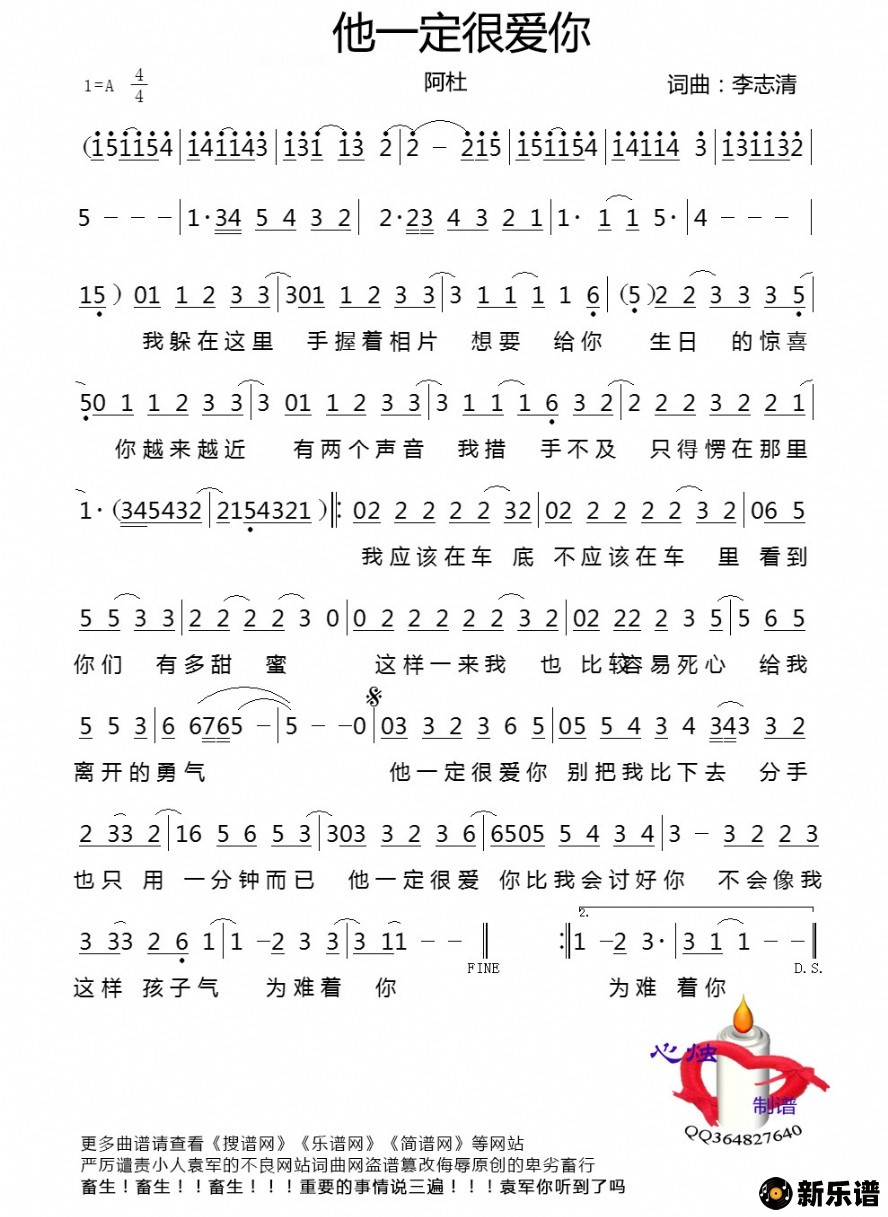 《他一定很爱你》简谱 阿杜-心烛制谱
