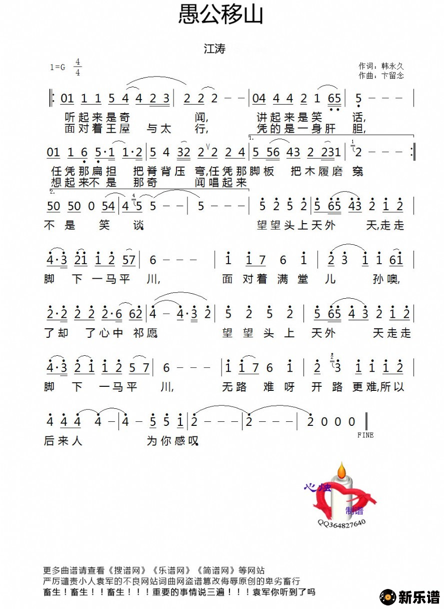 江涛演唱的愚公移山歌词,愚公移山简谱.