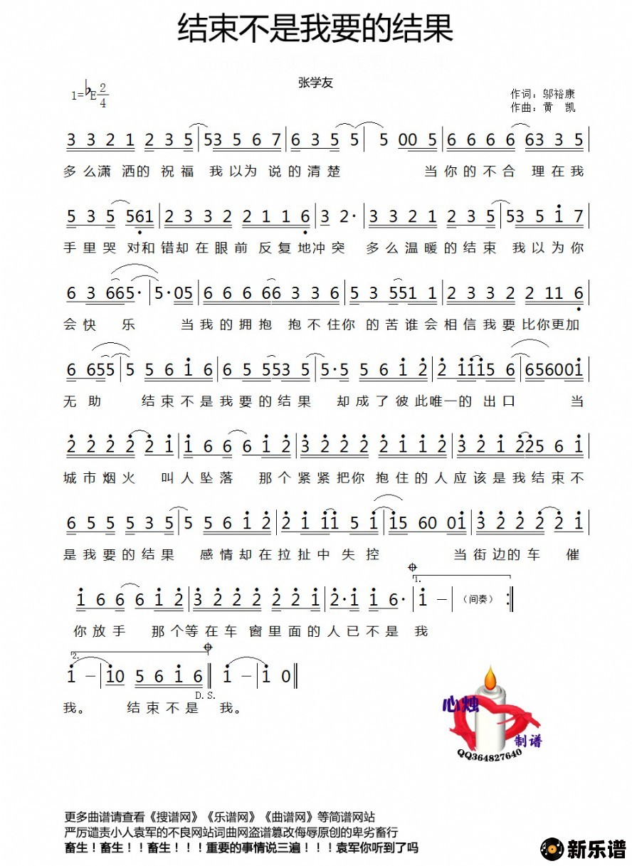 《结束不是我要的结果》简谱 张学友-心烛制谱
