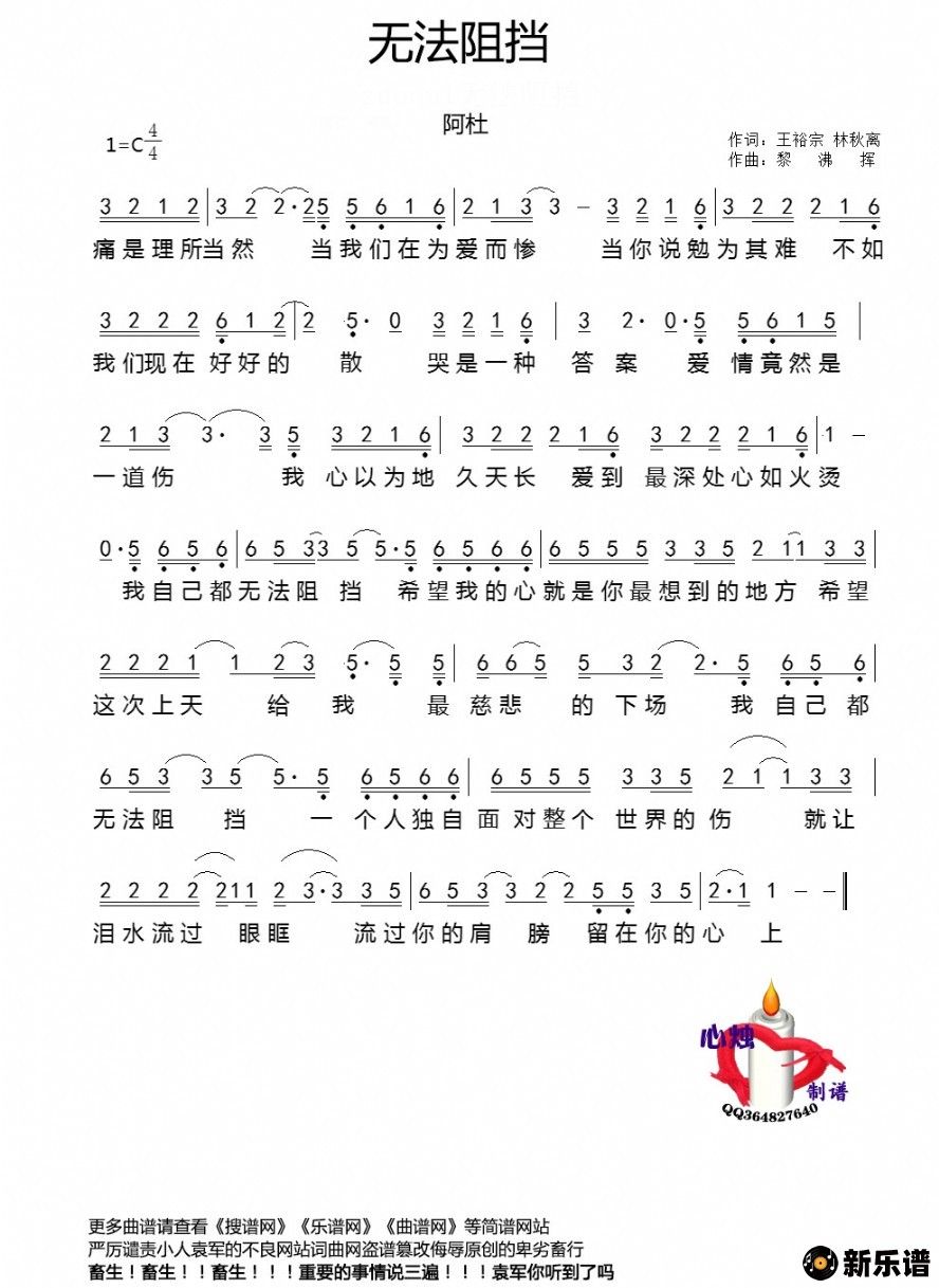 阿杜演唱的无法阻挡歌词,无法阻挡简谱.