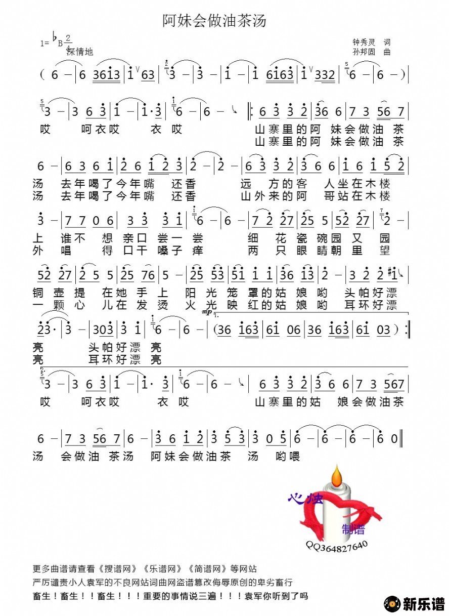《阿妹会做油茶汤》简谱 佚名-心烛制谱