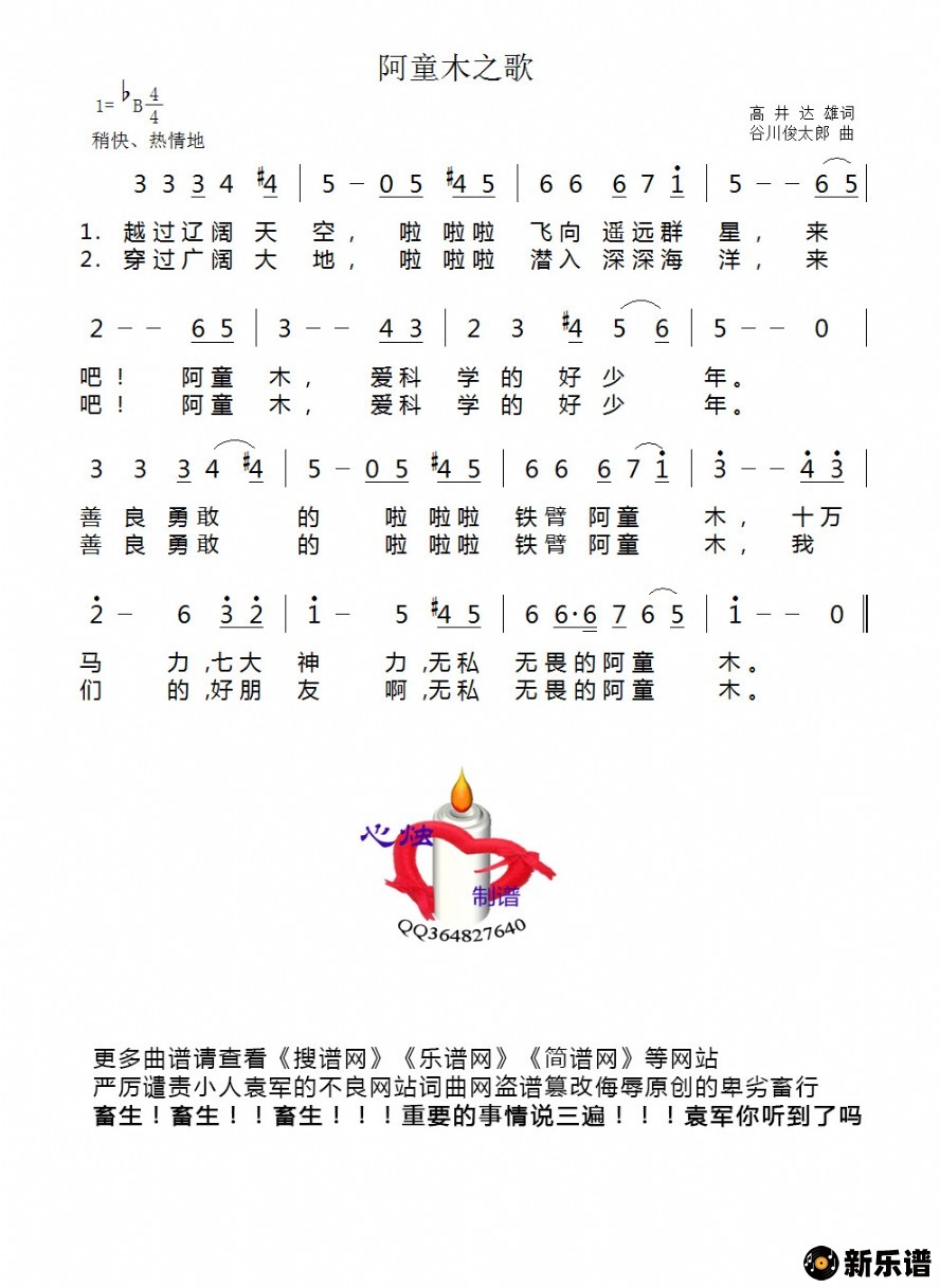 《阿童木之歌》简谱 佚名-心烛制谱