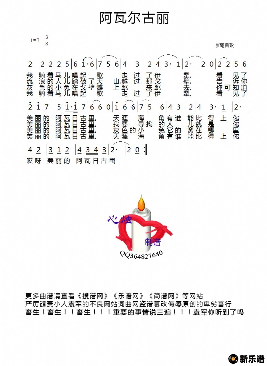 《阿瓦尔古丽》简谱 刀郎-心烛制谱