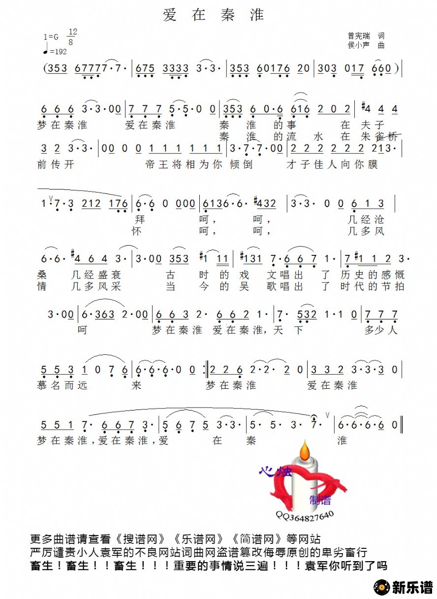 《爱在秦淮》简谱 佚名-心烛制谱