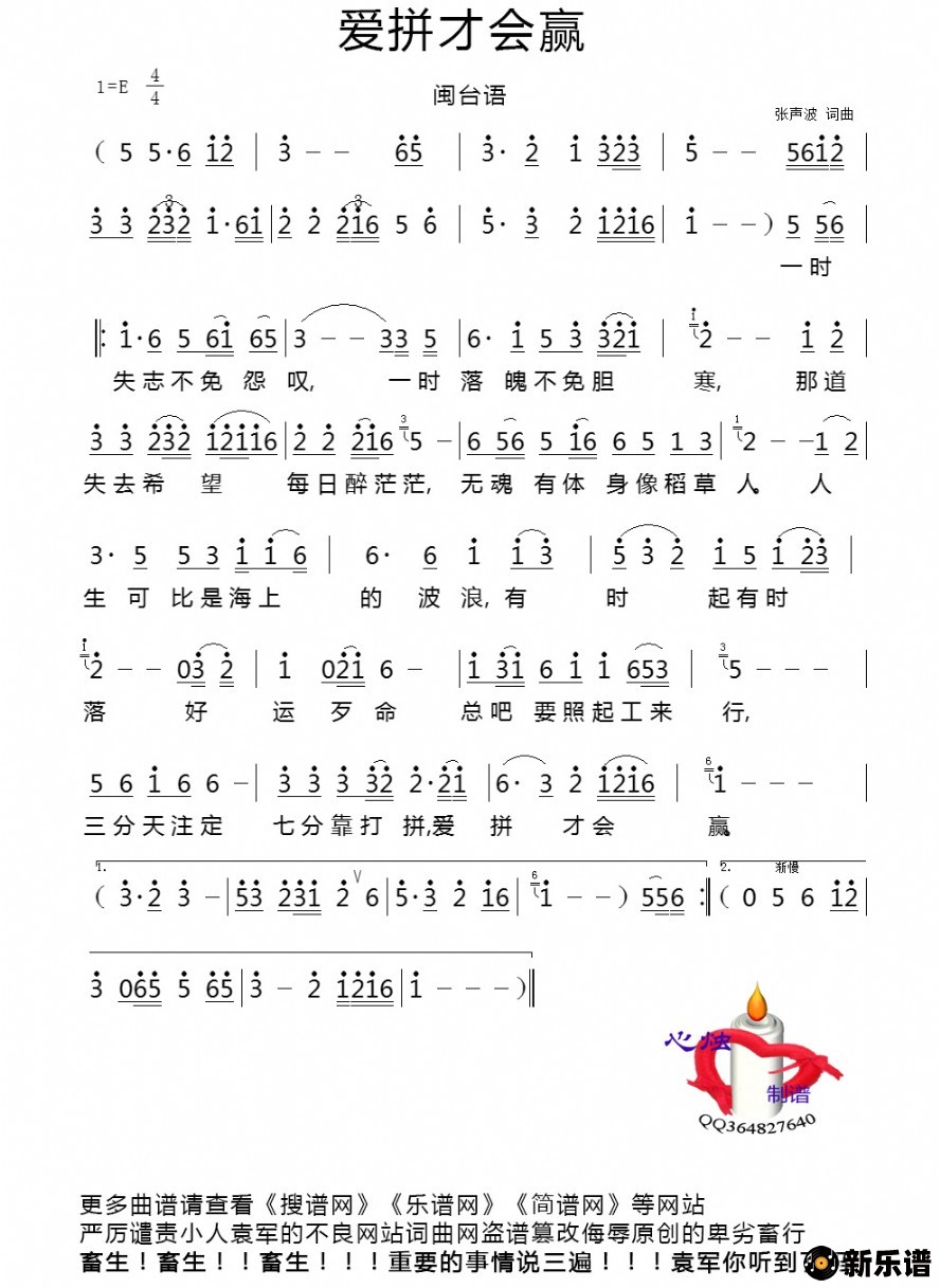 《爱拼才会赢》简谱 佚名-心烛制谱