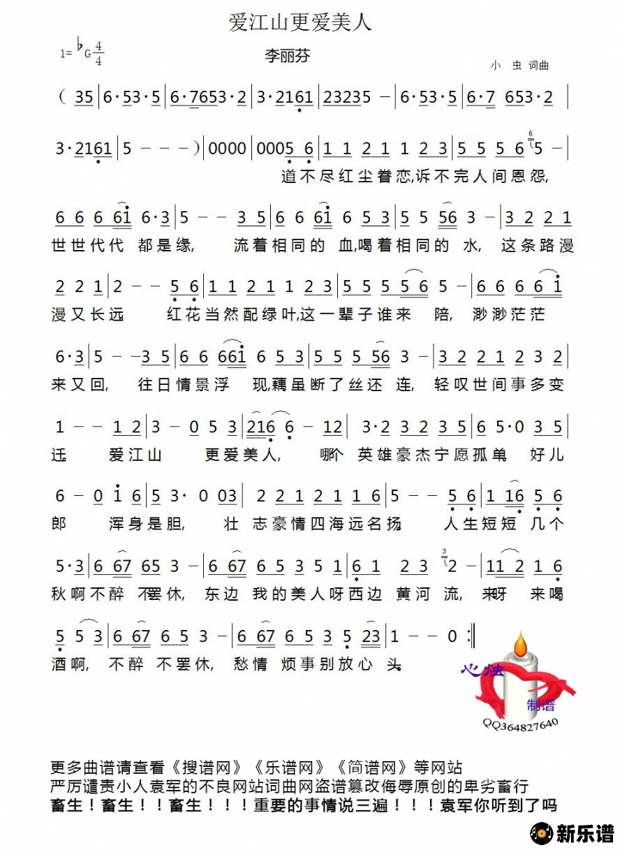 《爱江山更爱美人》简谱 李丽芬-心烛制谱