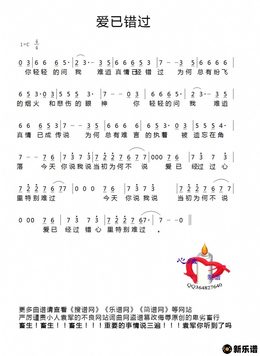 佚名演唱的爱已错过歌词,爱已错过简谱.