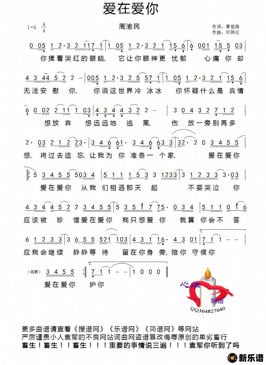 《爱在爱你》简谱 周渝民-心烛制谱