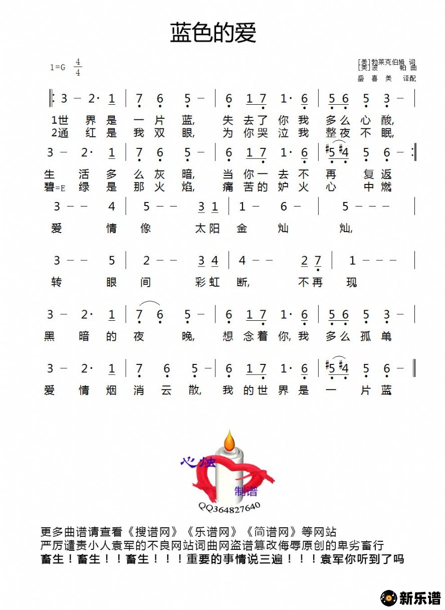 佚名演唱的蓝色的爱歌词,蓝色的爱简谱.