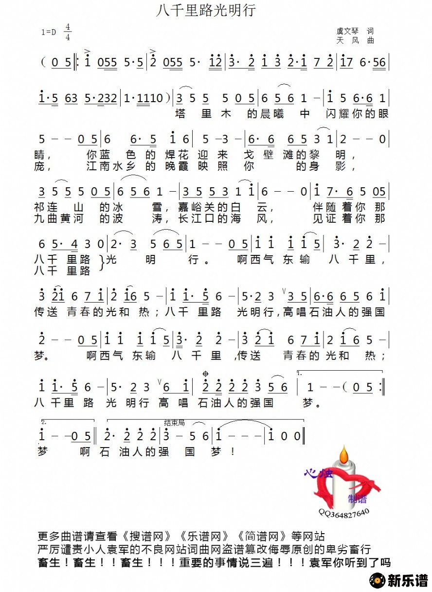 《八千里路光明行》简谱 佚名-心烛制谱