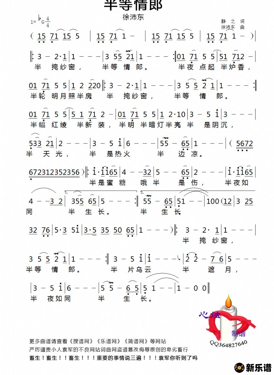 徐沛东演唱的半等情郎歌词,半等情郎简谱.