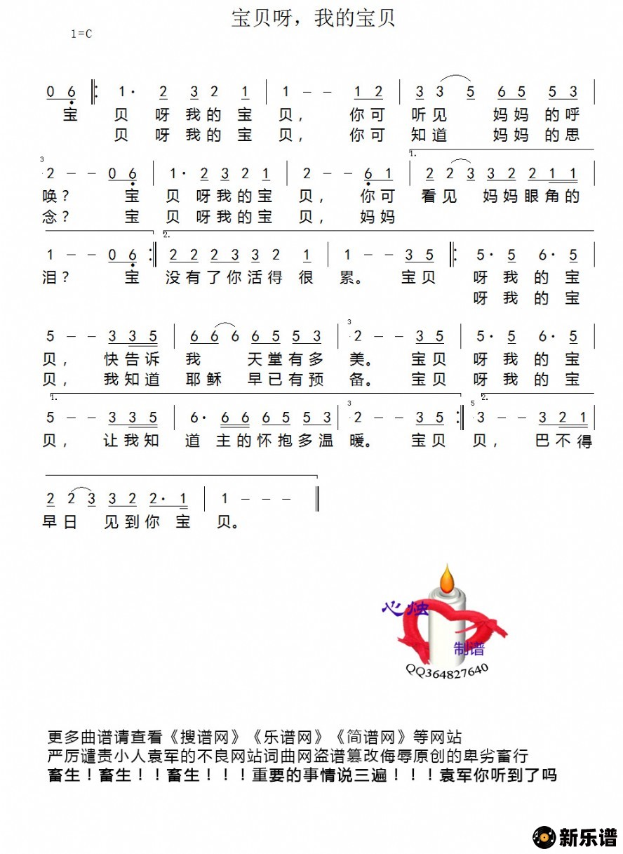 《宝贝呀 我的宝贝》简谱 佚名-心烛制谱