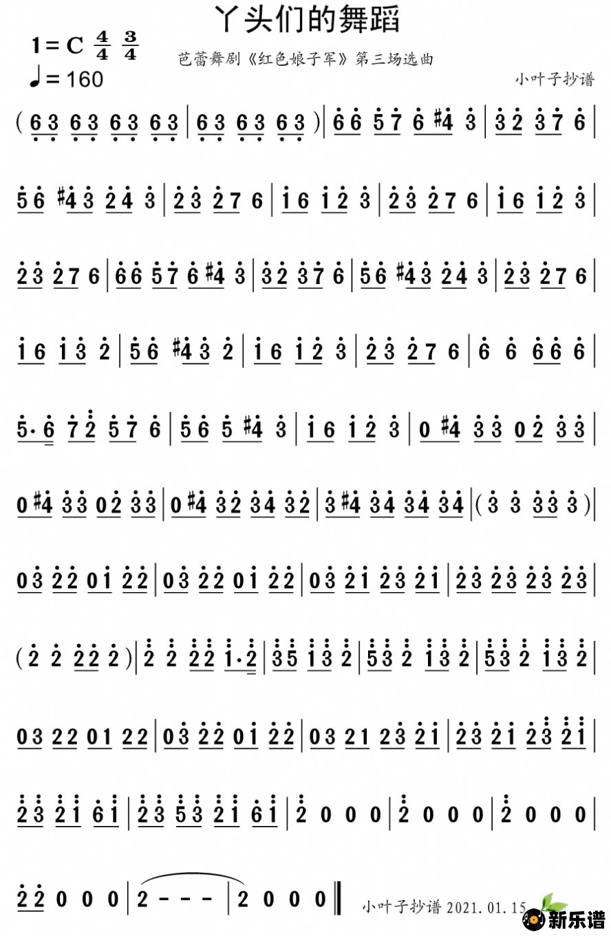 《丫头们的舞蹈(芭蕾舞剧《红色娘子军》第三场选曲)》简谱 -小叶子制谱