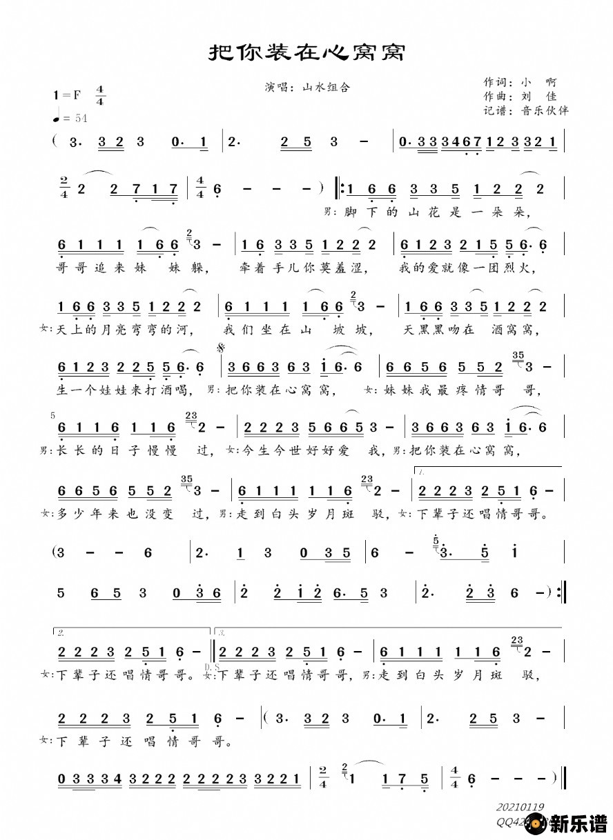 《把你装在心窝窝》简谱 山水组合-音乐伙伴制谱