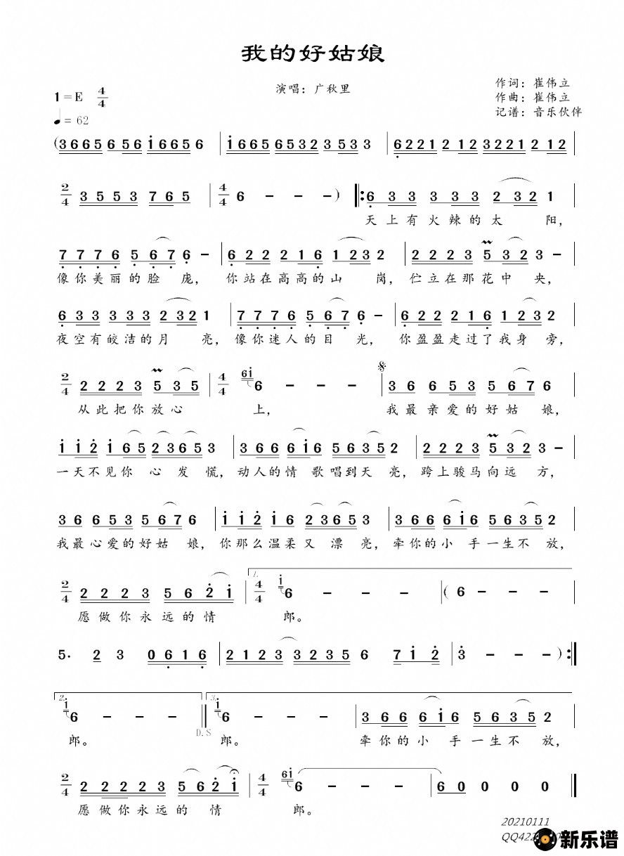 《我的好姑娘》简谱 广秋里-音乐伙伴制谱