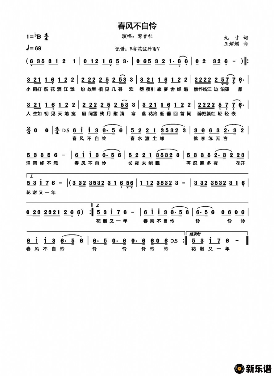 鸾音社演唱的春风不自怜歌词,春风不自怜简谱.