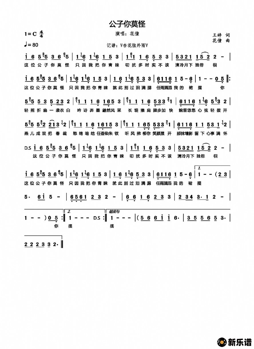 《公子你莫怪》简谱 花僮-杏花弦外雨制谱