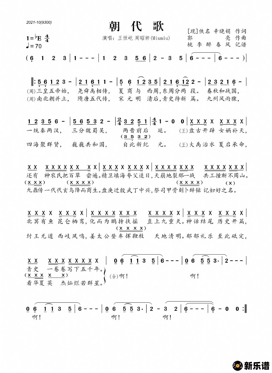朝代歌/王恒屹/周昭妍(miumiu) 相关曲谱