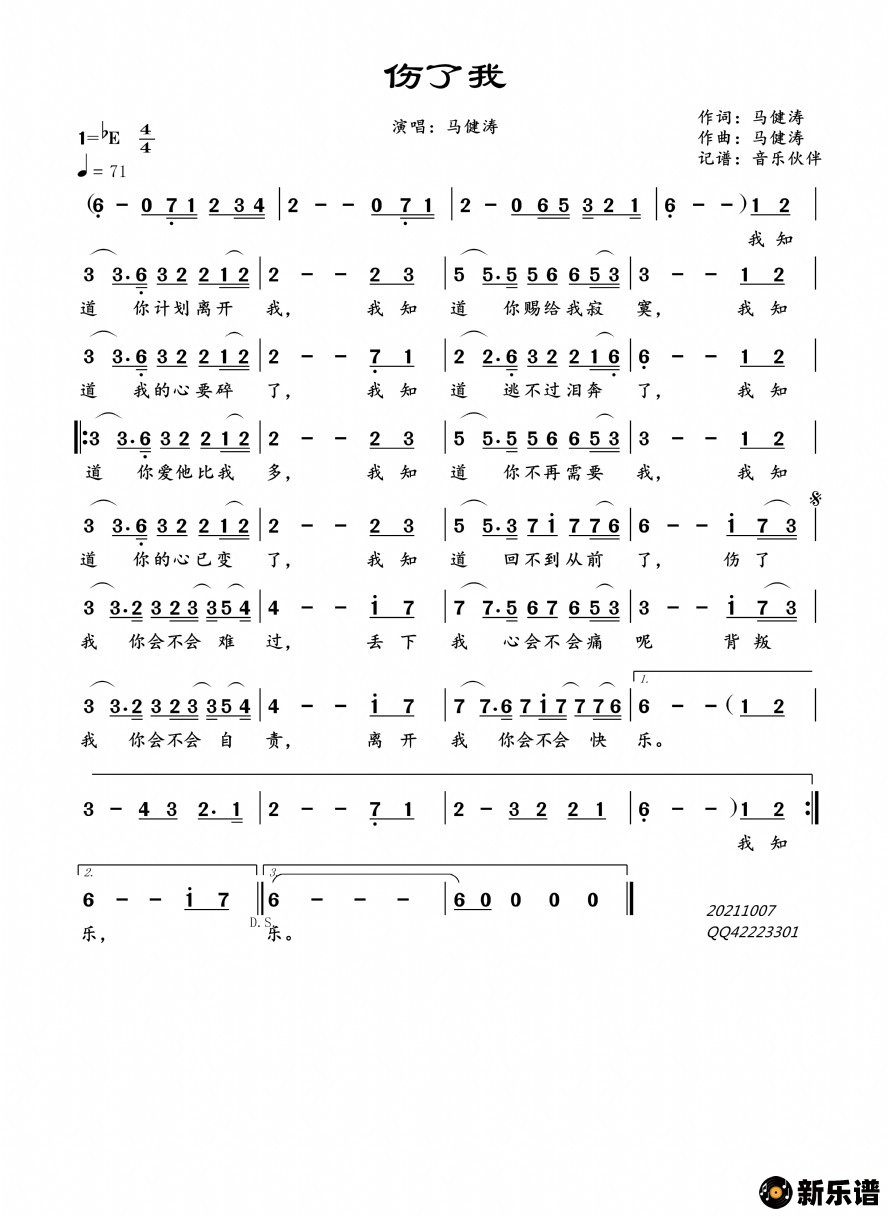《伤了我》简谱 马健涛-音乐伙伴制谱