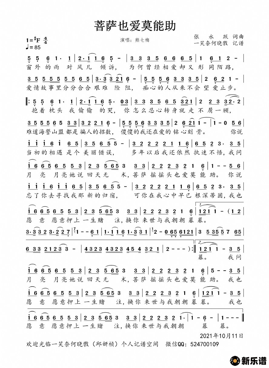 《菩萨也爱莫能助》简谱 熊七梅-一笑奈何晓斅制谱