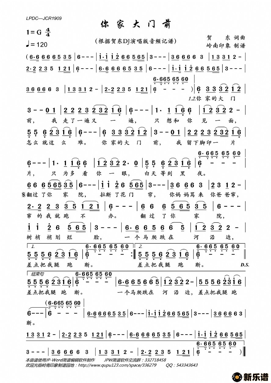 《你家大门前》简谱 贺东-岭南印象制谱