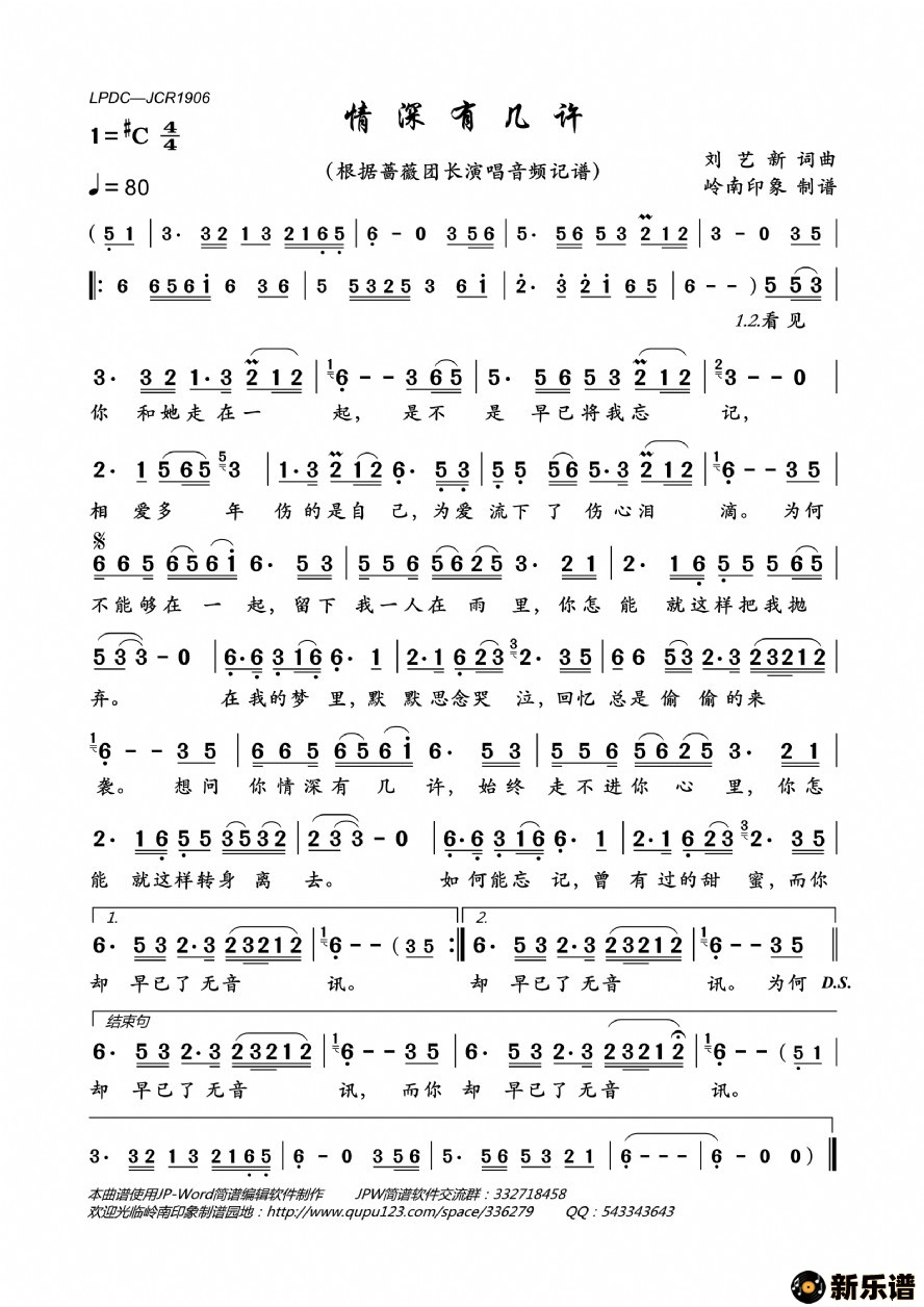 蔷薇团长演唱的情深有几许歌词,情深有几许简谱.
