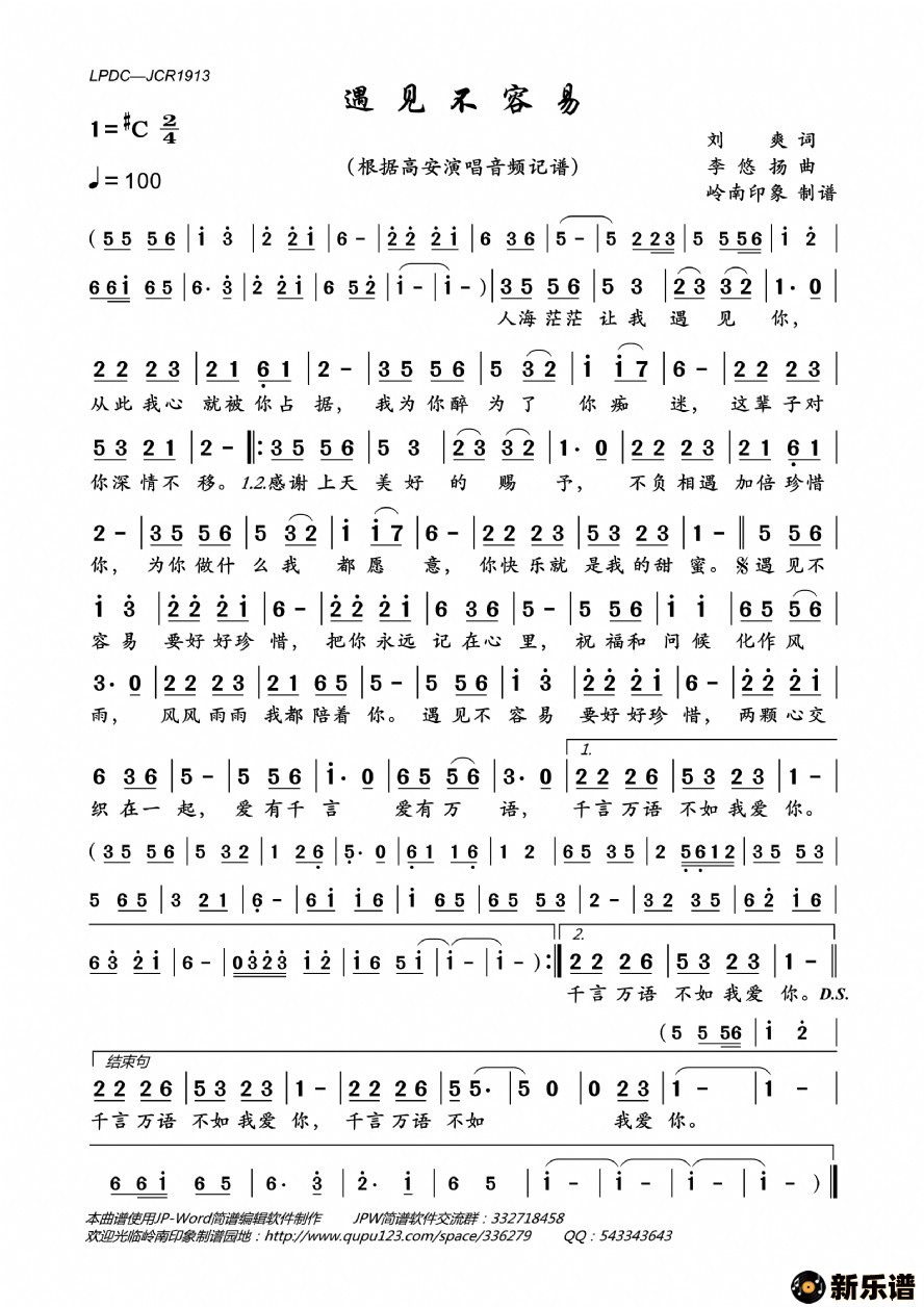 高安演唱的遇见不容易歌词,遇见不容易简谱.