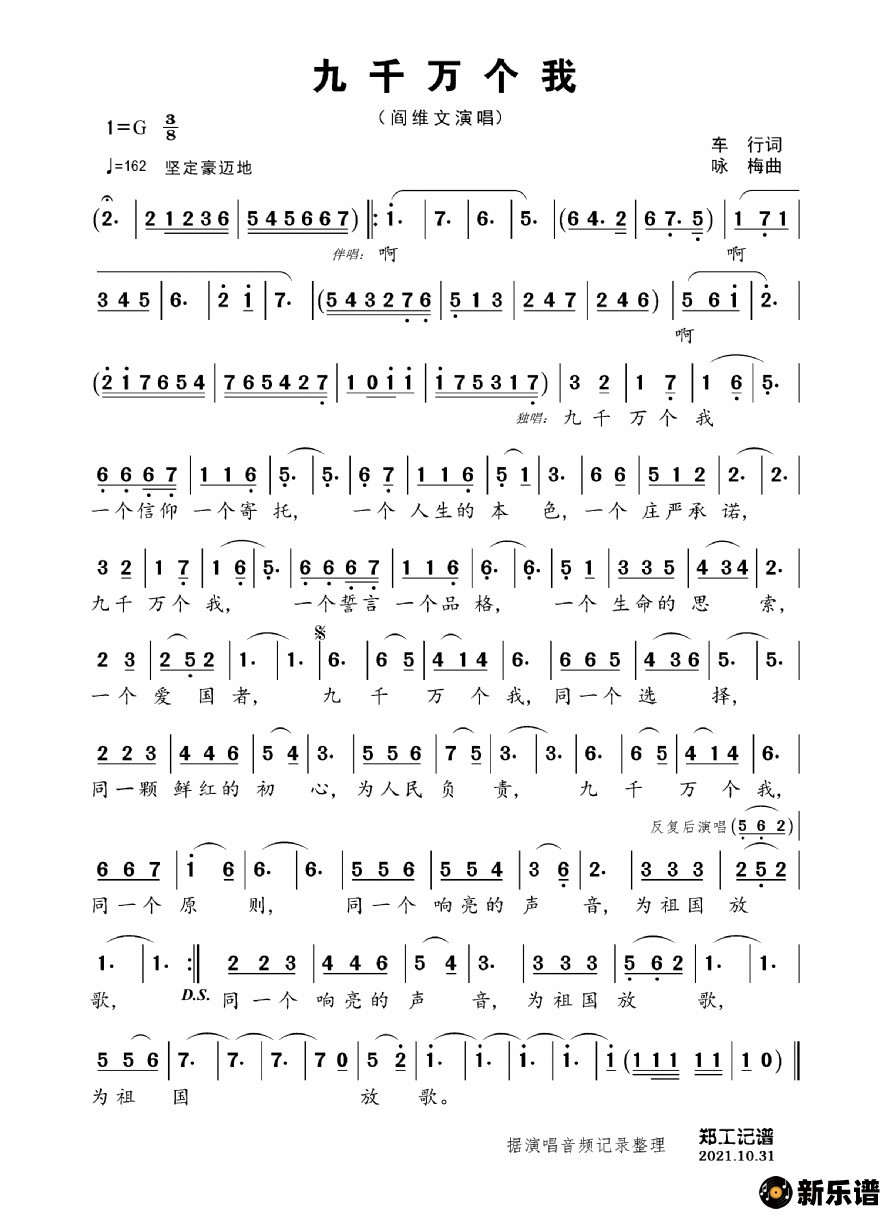 阎维文演唱的九千万个我歌词,九千万个我简谱.