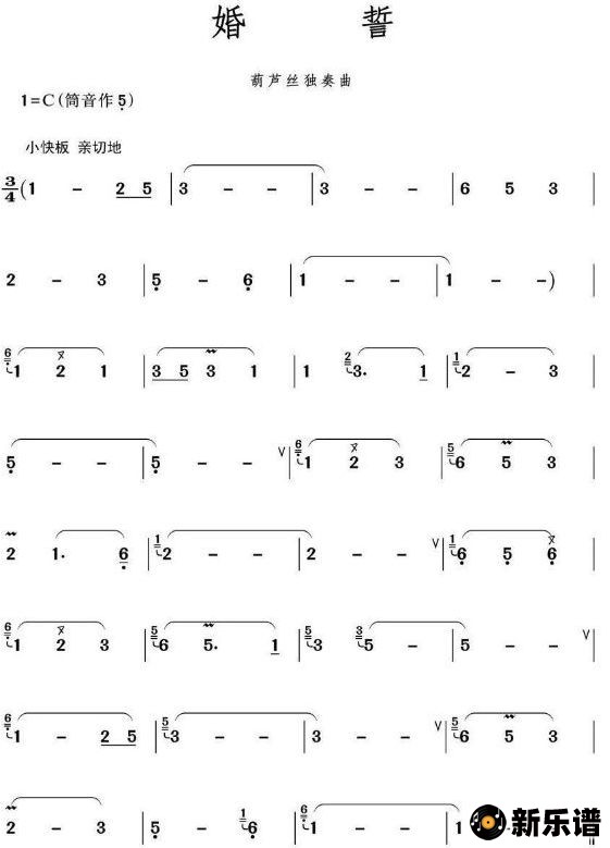 《婚誓》简谱 葫芦丝-韵晴制谱