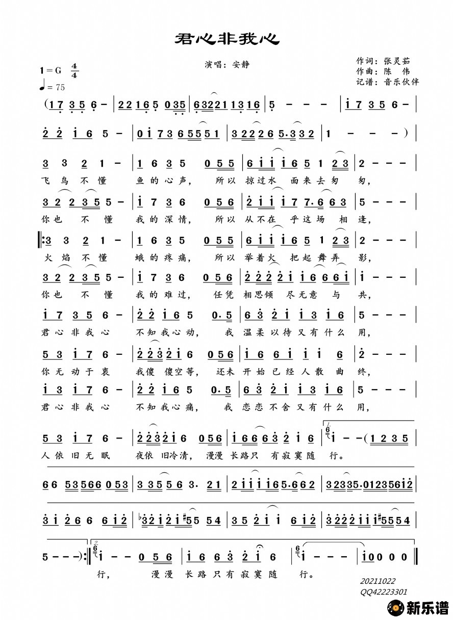 《君心非我心》简谱 安静-音乐伙伴制谱