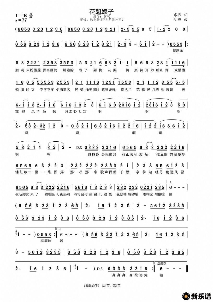 甘璐演唱的花魁娘子歌词,花魁娘子简谱.