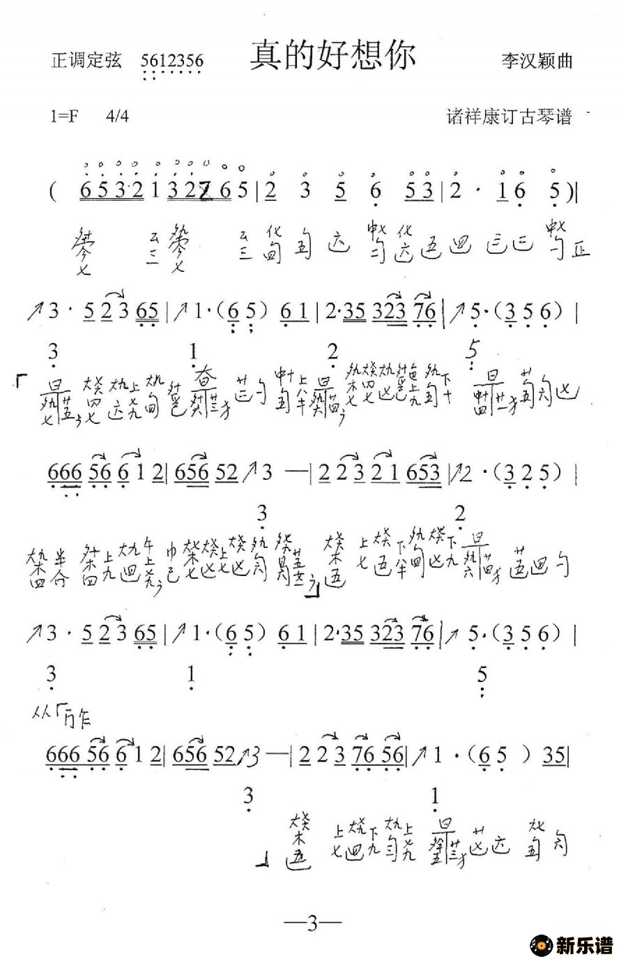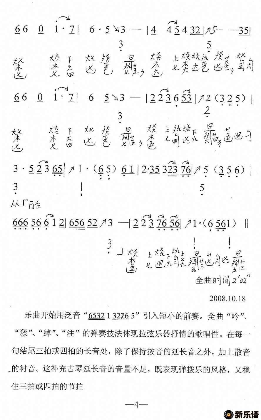作曲:李汉颖(古琴曲、简谱+减字谱)