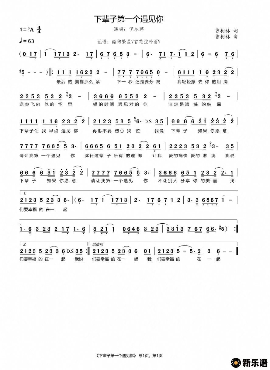 下辈子第一个遇见你/倪尔萍 相关曲谱