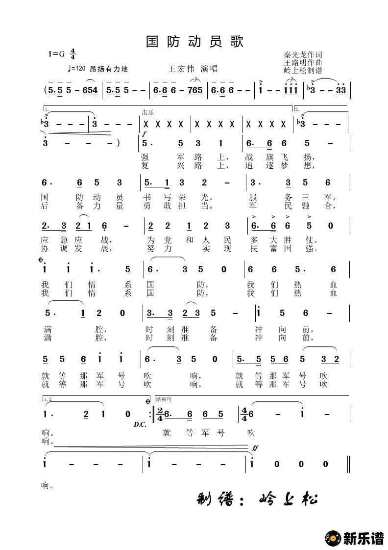 《国防动员歌》简谱 王宏伟-岭上松制谱