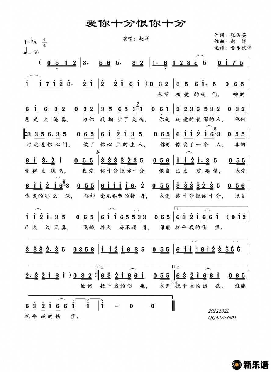 《爱你十分恨你十分》简谱 赵洋-音乐伙伴制谱
