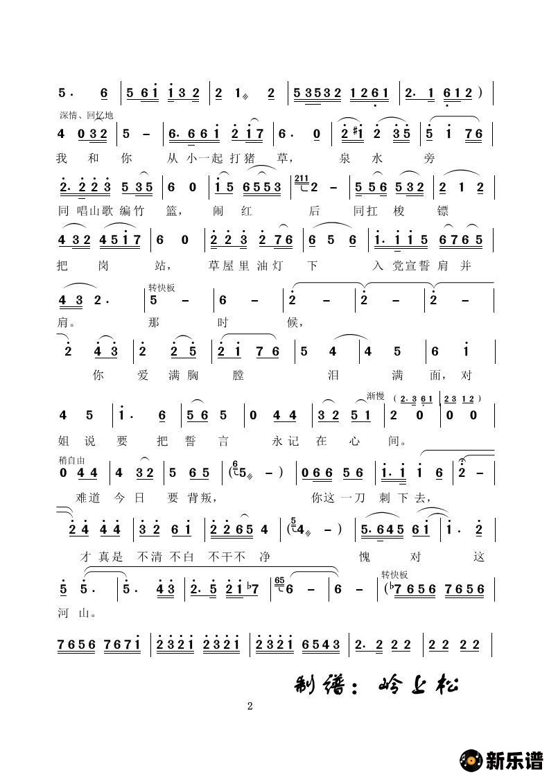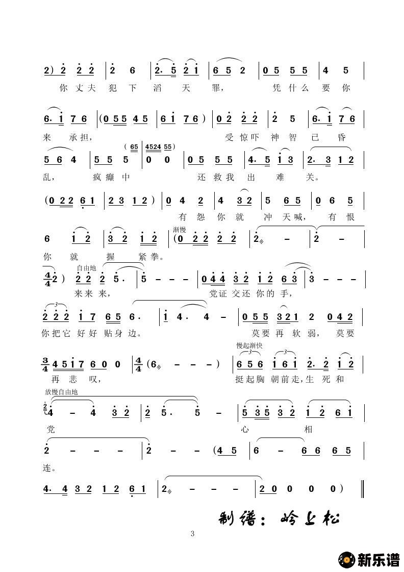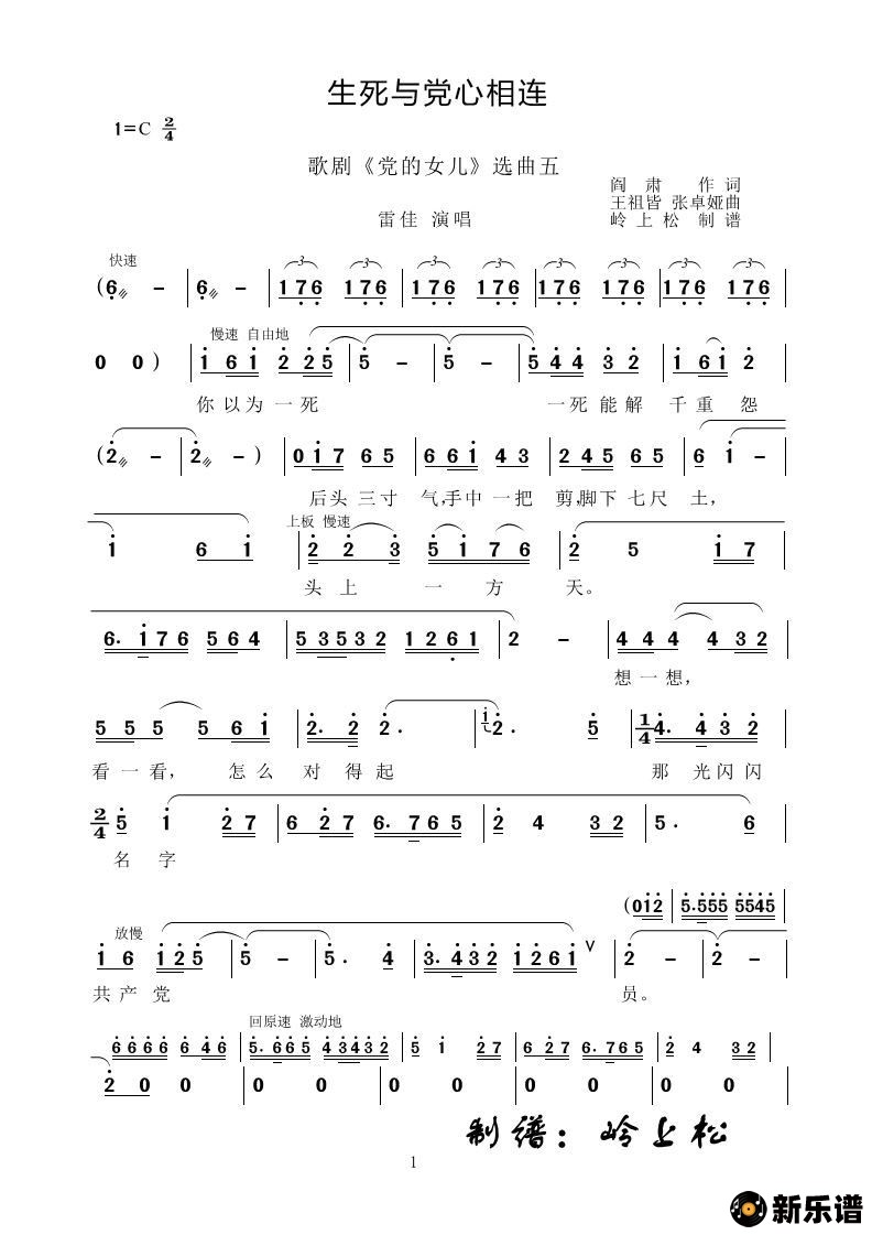 《生死与党心相连》简谱 雷佳-岭上松制谱