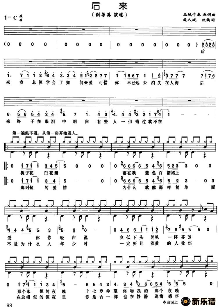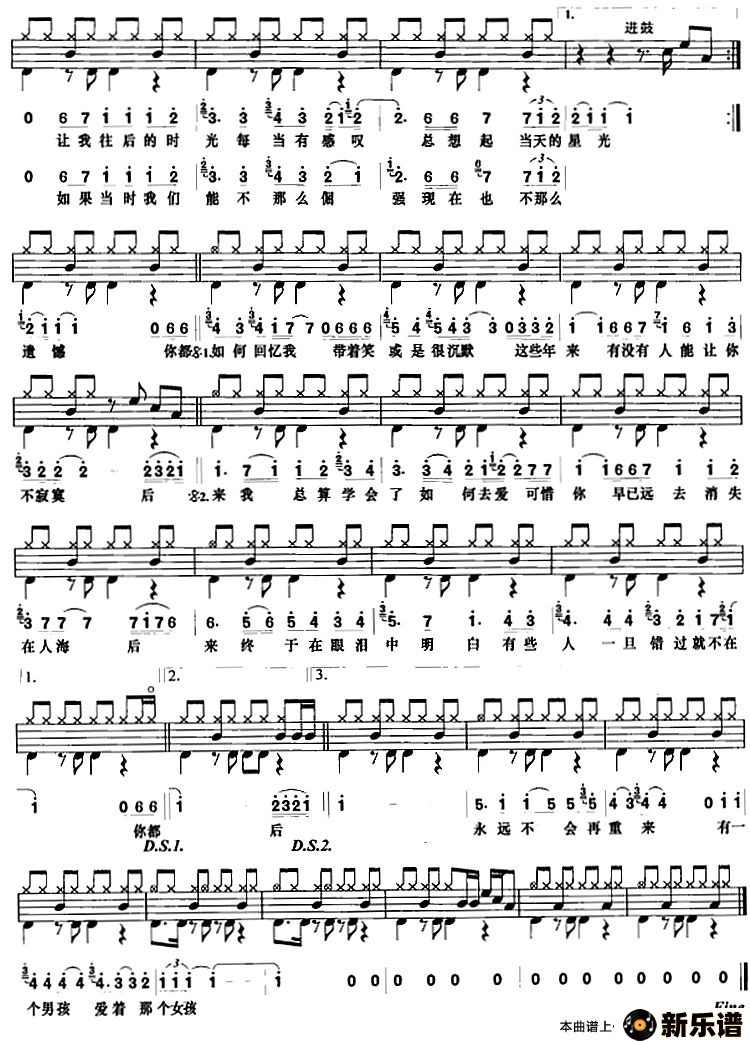 作词:玉城千春词 施人诚改编词 作曲:玉城千春曲 施人诚改编曲(架子鼓、鼓谱+简谱+歌词)