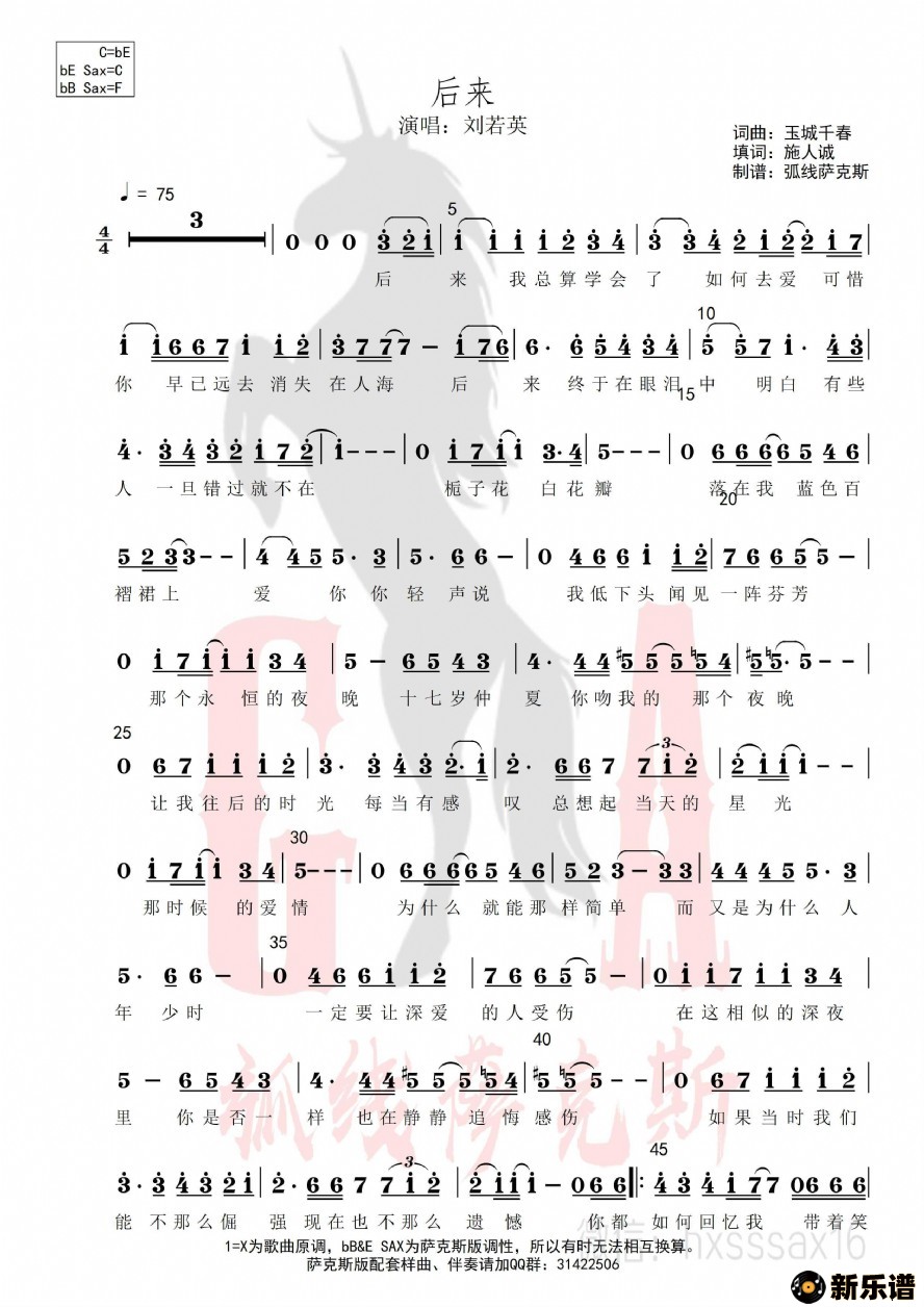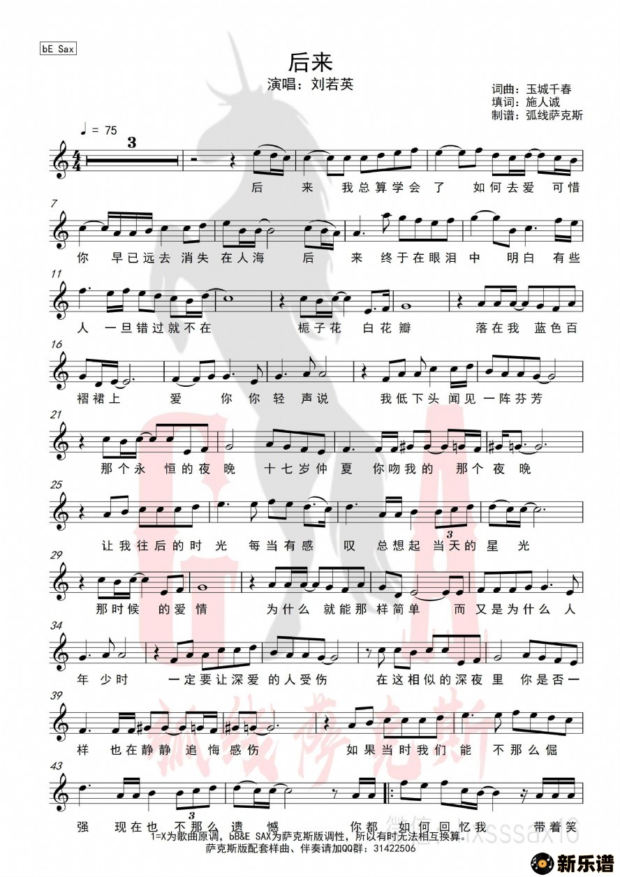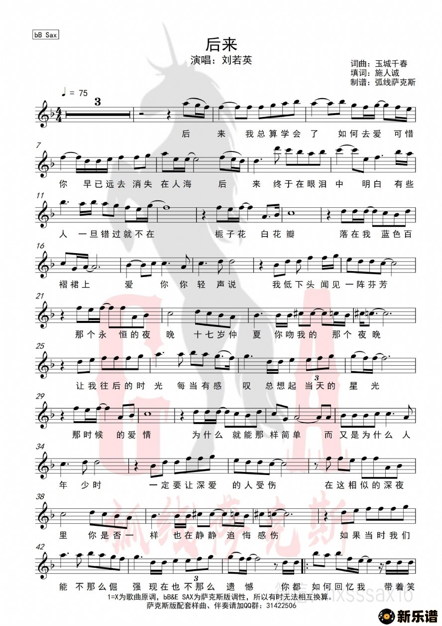 作词:施人诚 作曲:玉城千春(简谱&萨克斯五线谱)