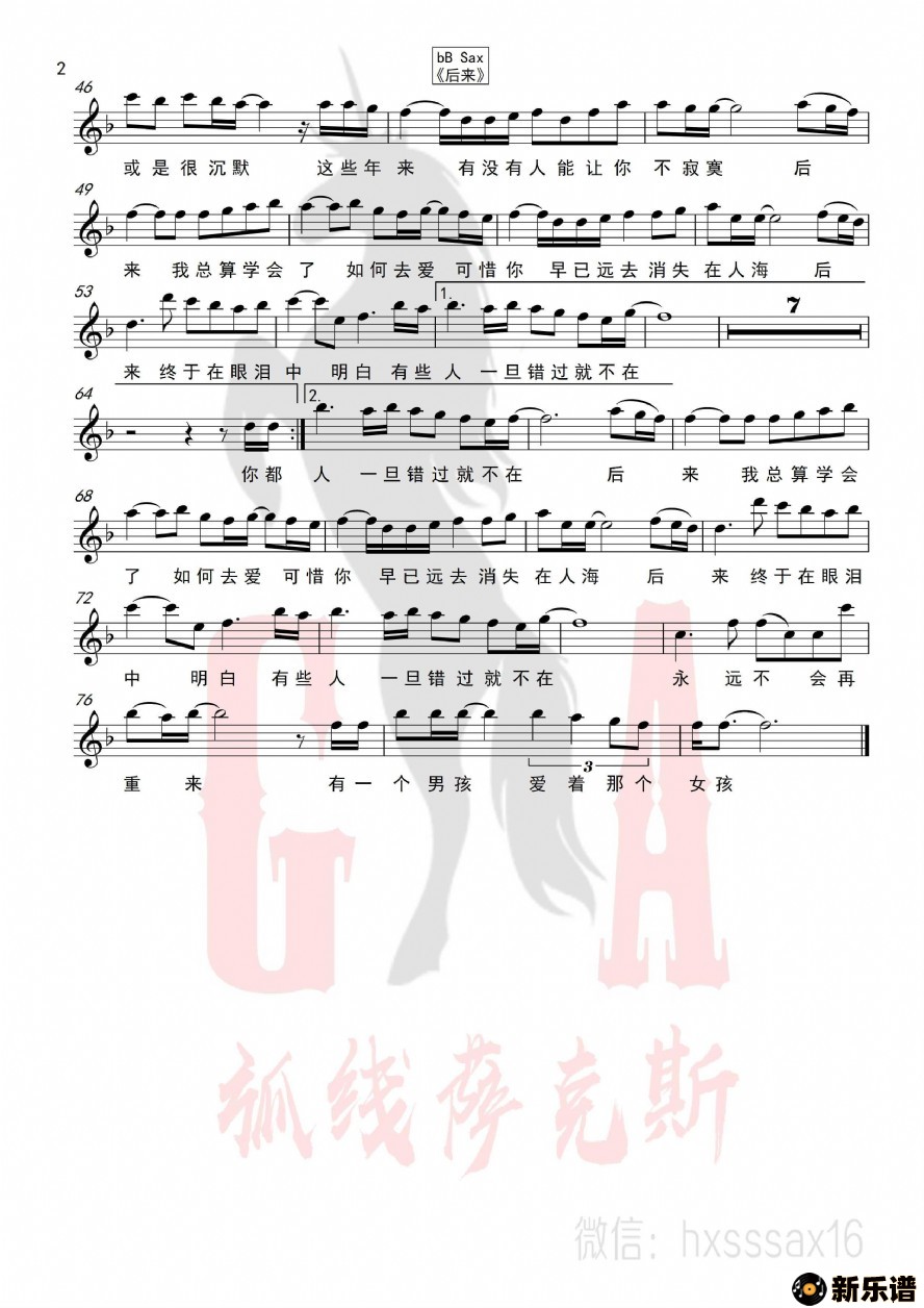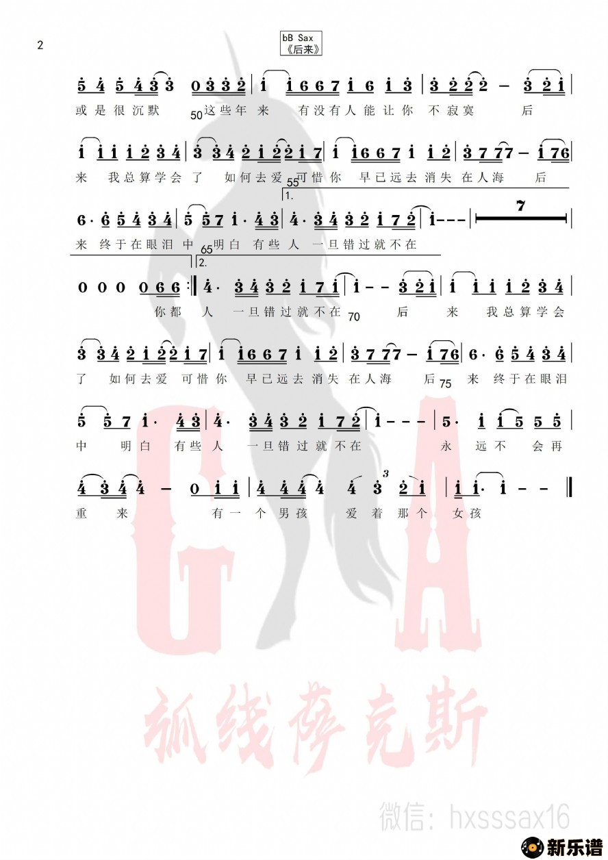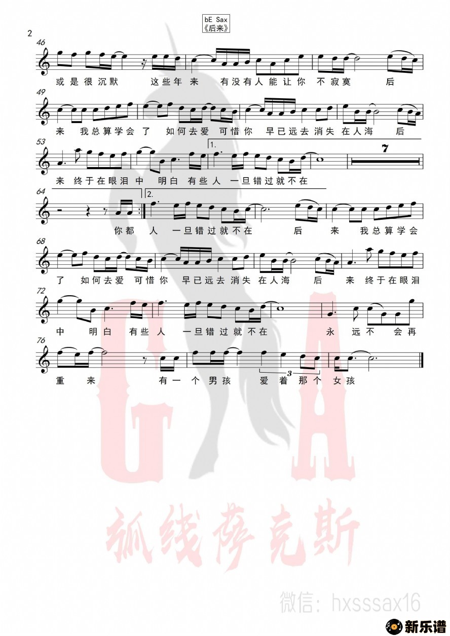 作词:施人诚 作曲:玉城千春(简谱&萨克斯五线谱)