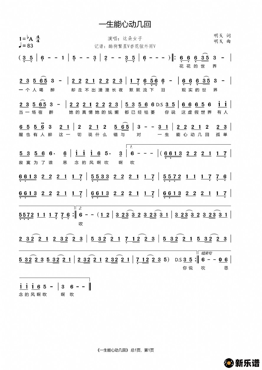 《一生能心动几回》简谱 这朵女子-杏花弦外雨制谱