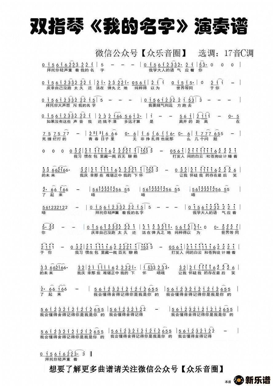 焦迈奇 我的名字 吉他谱 c调指法吉他谱