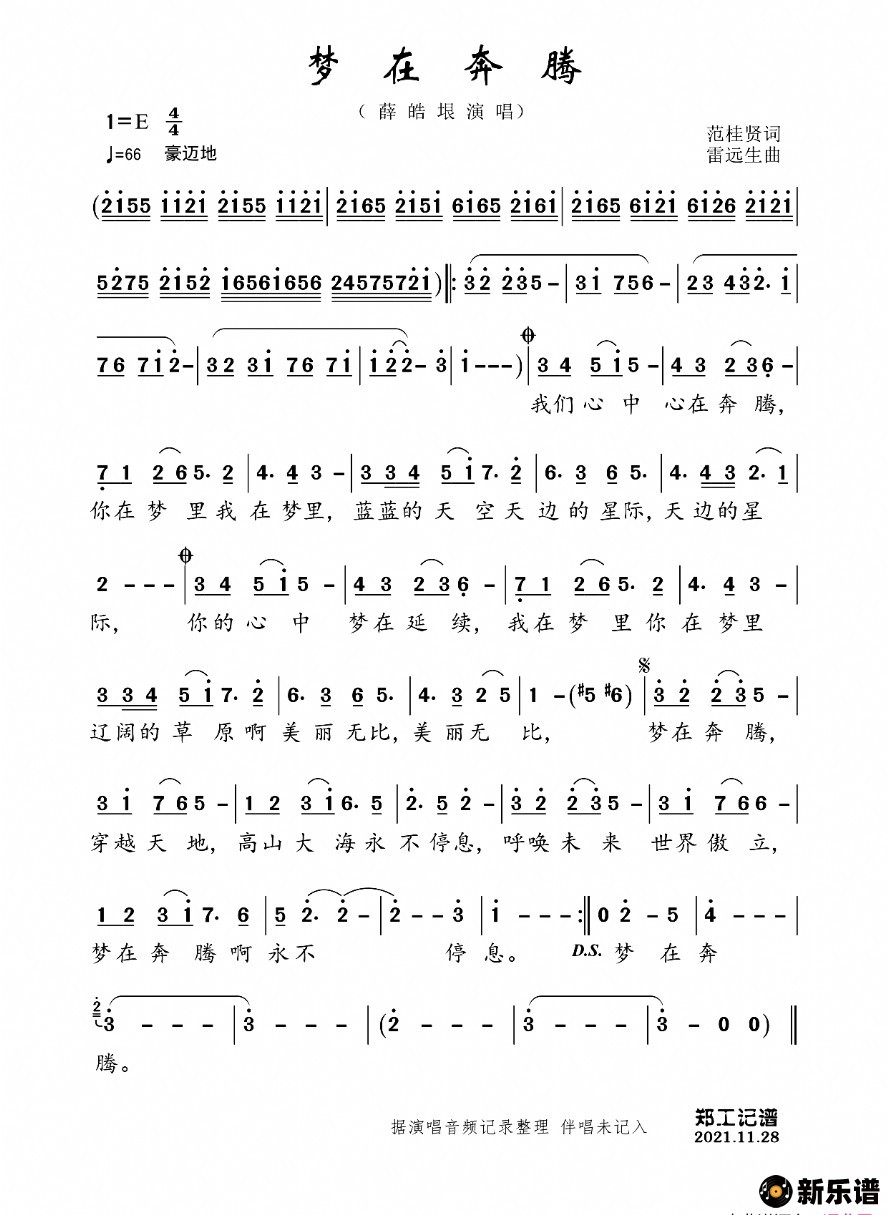 《梦在奔腾》简谱 薛皓垠-郑工制谱