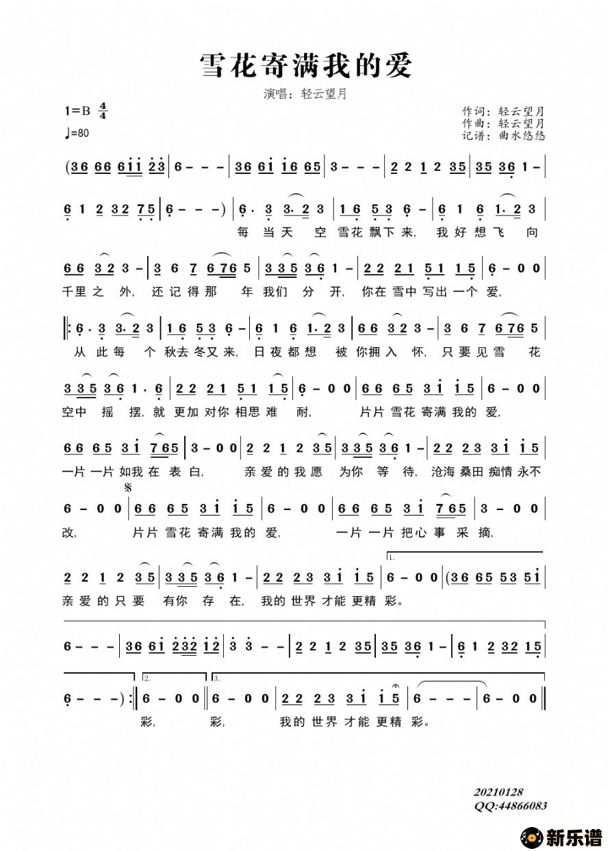 《雪花寄满我的爱》简谱 轻云望月-曲水悠悠制谱