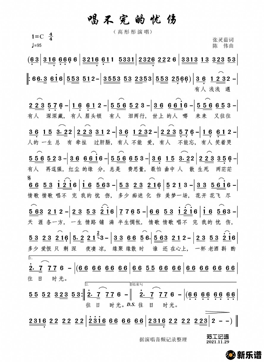 《唱不完的忧伤》简谱 高彤彤-郑工制谱