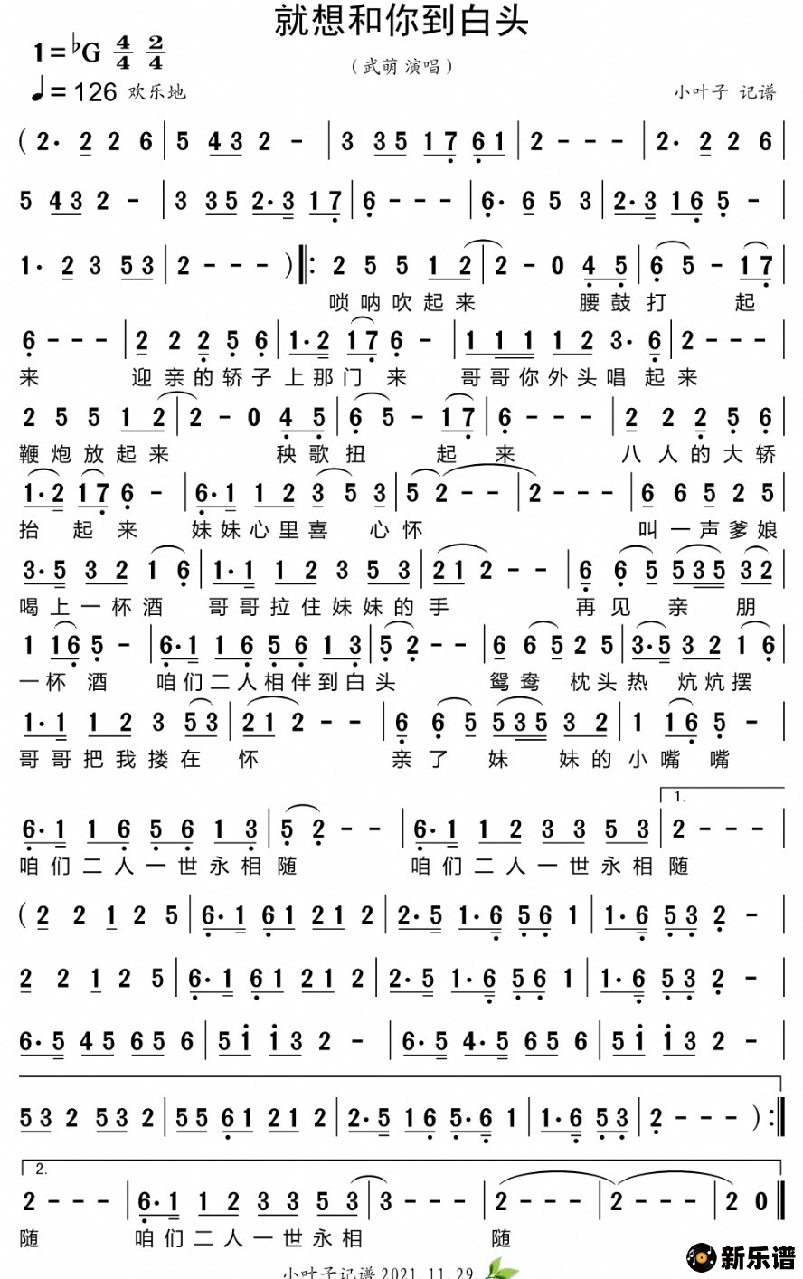 《就想和你到白头》简谱 武萌-小叶子制谱