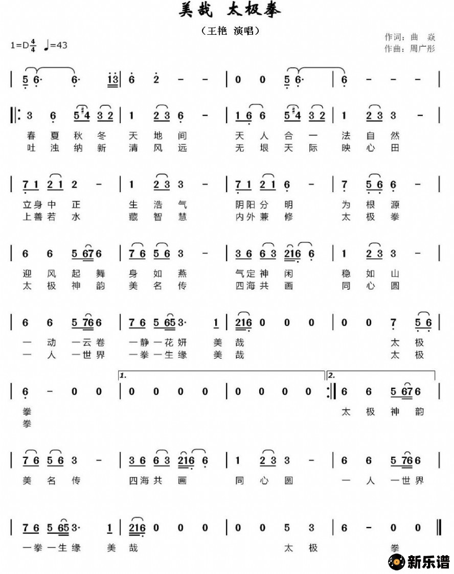 《美哉太极拳》简谱 王艳-小叶子制谱