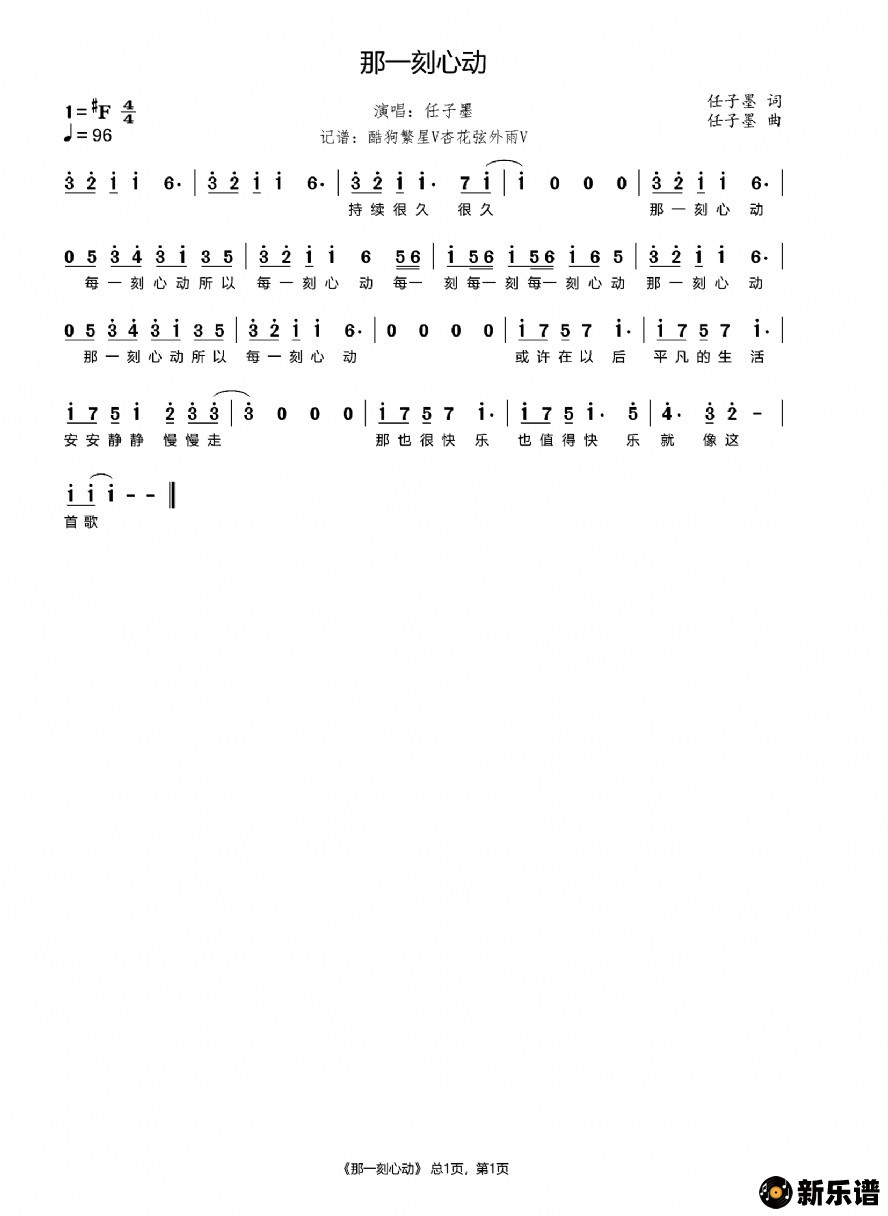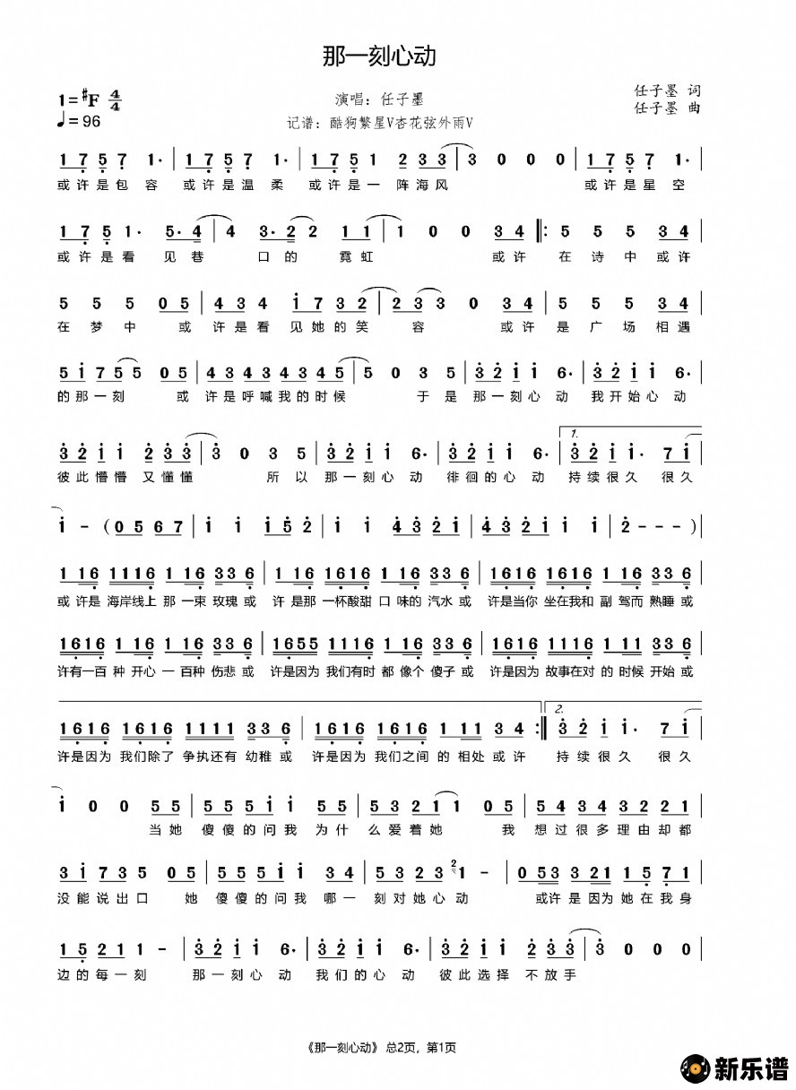 任子墨演唱的那一刻心动歌词,那一刻心动简谱.